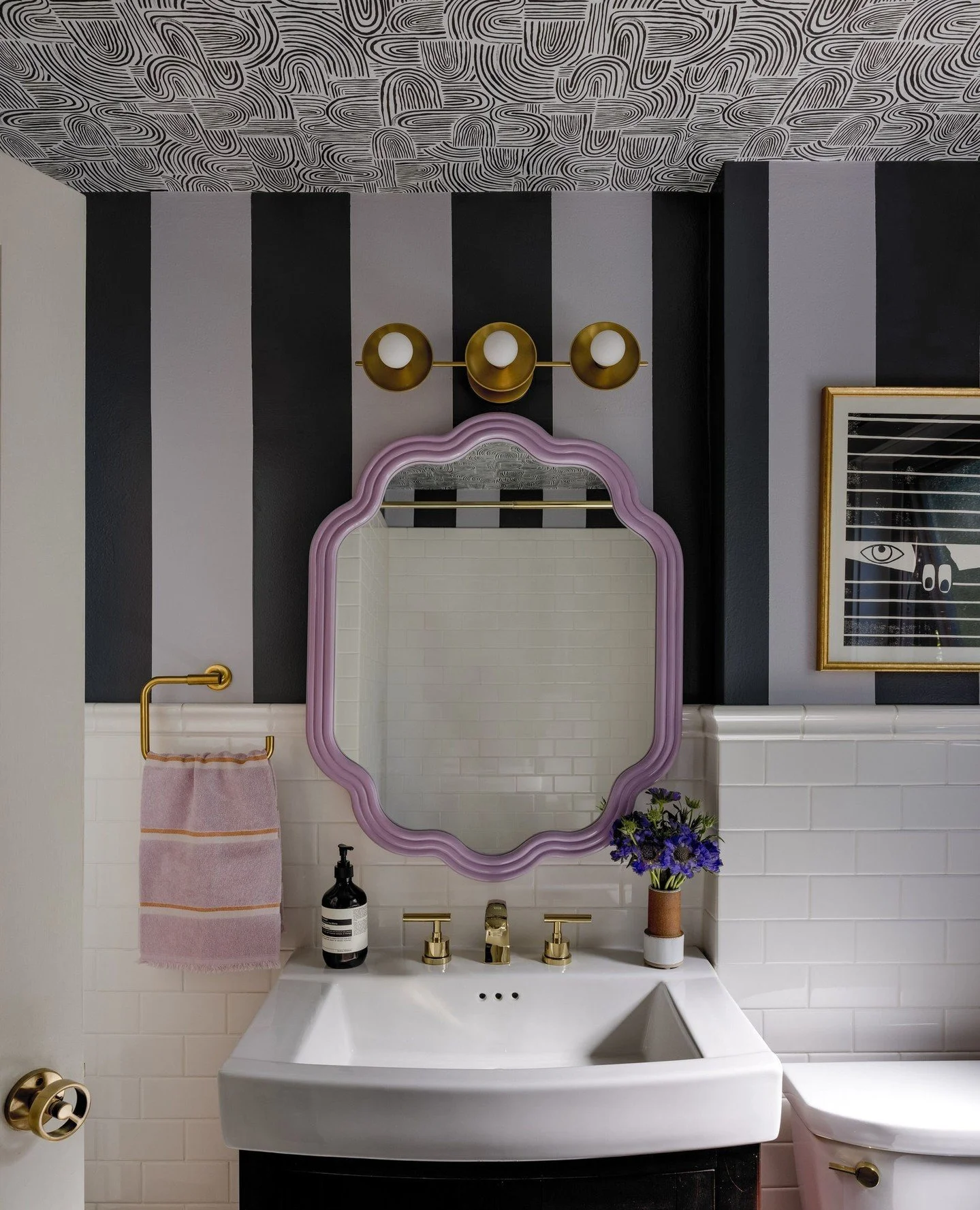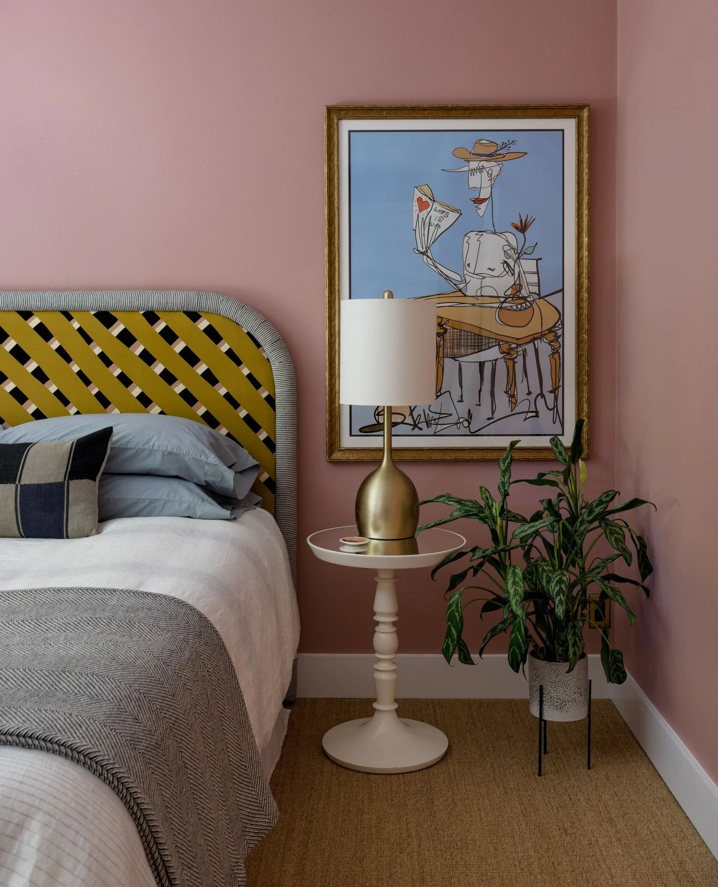 View fullsize A dash of blue and a sprinkle of dijon in this mauve room give me all the feels.